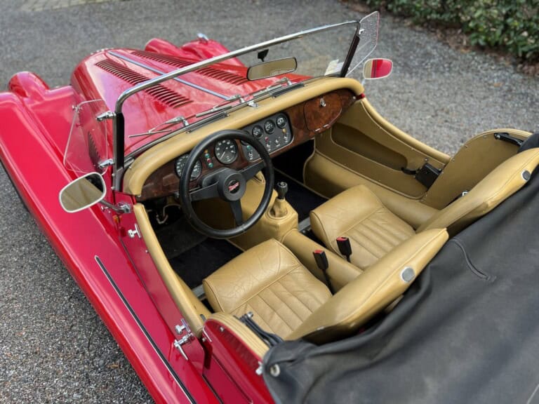 Beautifull Morgan +8 in perfect condition with only 21000KM!! Second owner, 1995 model with the best 3.9injection V8 engine, 5-speed manual gearbox, modern technics in an old jacket!! Finished in red with beige leather, comes with full weather gear, just completely serviced! Ready for the summer!!